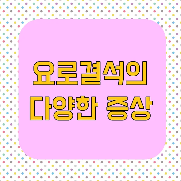 요로결석의 증상은 결석의 크기, 위치, 요로 폐색 정도 등에 따라 매우 다양하게 나타날 수 있어요. 어떤 사람은 격심한 통증 을 호소하는 반면, 어떤 사람은 아무런 증상도 느끼지 못하는 경우도 있죠. 하지만 증상이 없다고 해서 안심할 수는 없어요! 왜냐하면, 증상이 없는 요로결석이라도 시간이 지나면서 신장 기능 저하 와 같은 심각한 합병증을 유발할 수 있기 때문이에요.