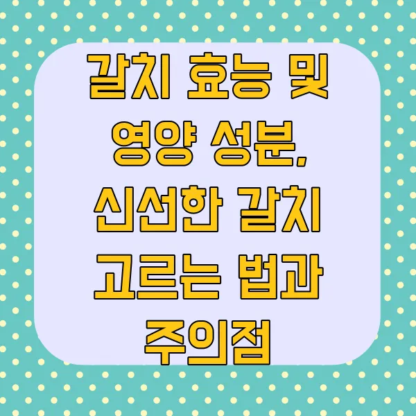 아, 드디어 기다리고 기다리던 갈치 이야기의 마지막 챕터~! 바로 "주의할 점"이에요! 갈치가 아무리 맛있고 몸에 좋다고 해도, 주의해야 할 점들을 꼼꼼히 알아두는 게 중요 하겠죠? 마치 멋진 드레스를 입을 때 숨겨진 작은 가시를 조심해야 하는 것처럼 말이죠! 자, 그럼 어떤 점들을 주의해야 하는지, 함께 꼼꼼히 살펴볼까요~?