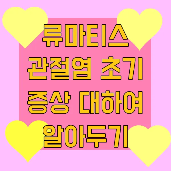 류마티스 관절염… 이름만 들어도 벌써 걱정부터 앞서시는 분들 많으시죠? 하지만 너무 염려 마세요! 초기 증상을 잘 알아두면 조기 진단과 치료를 통해 질병 진행을 늦추고 삶의 질을 유지 할 수 있답니다! 😊 초기에는 증상이 모호하고 다른 질환과 헷갈리기 쉬워서 "에이, 괜찮겠지~" 하고 넘어가는 경우가 많은데요. 절대 그러시면 안 돼요! 오늘은 류마티스 관절염의 초기 증상 중에서도 특히 놓치기 쉬운 징후들을 콕콕 집어서 알려드릴게요. 😉